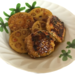 画像無料転載OK 冬に安いレンコンレシピ 食物繊維豊富がうれしい レンコンに取りひき肉にニンジンやネギを混ぜたもの...